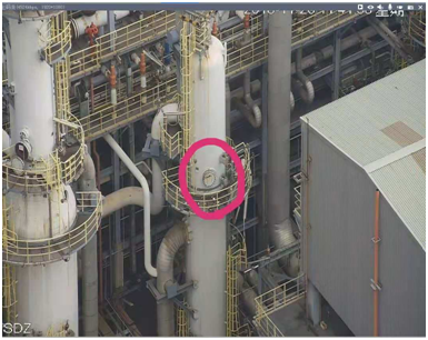 该罐11D-2006M为烯烃分离装置的裂解气压缩机三段排出罐,位于裂解气压缩机C-2000的东北侧,与三段吸入罐11D-2004M两个罐是上下叠在一起的,上面的是11D-2006M罐。罐体高度8.3米左右,直径2725mm,有一个人孔,直径600mm,人孔中心线距离罐底直线距离约为1.4米。