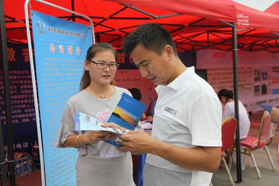 我公司人力资源处精心组织、认真筹划,提前印制招聘简章和招生简章,对公司的生产经营、职工待遇、企业文化进行详细介绍,电仪张子佩、化二赵少伟、尿素梁秀芳、机修韦慧顶着烈日酷暑,积极参与招聘会,现场发放招聘简章,并向前来应聘的人员耐心礼貌的介绍情况,赢得了应聘人员的的一致认可,同时展现了中能化工良好的企业形象。