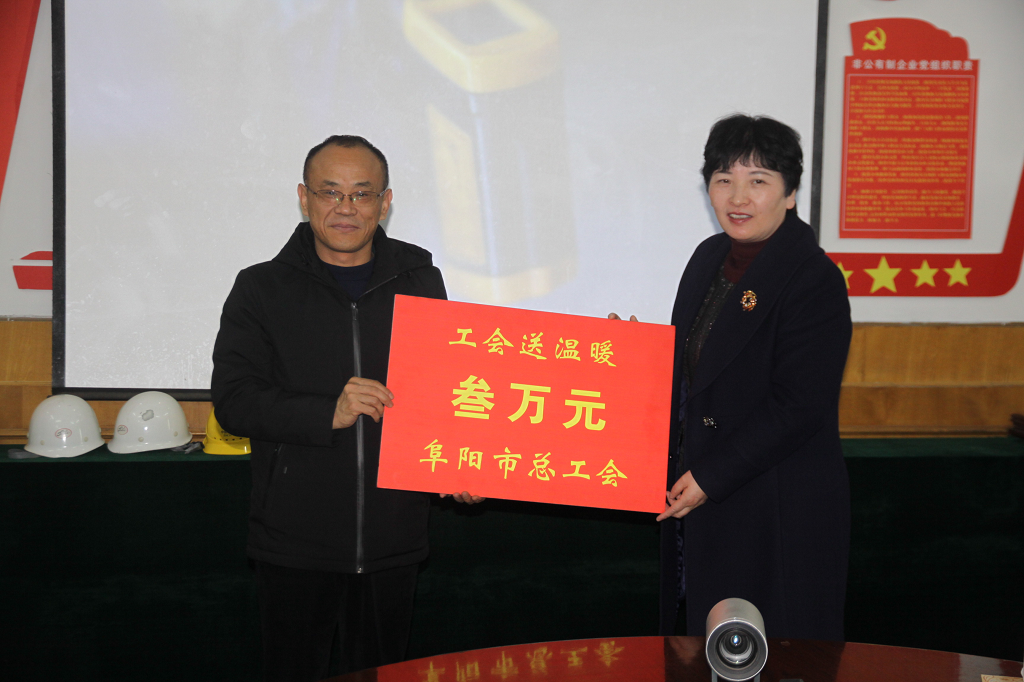2020年1月3日,阜阳市总工会党组书记、副主席房继红到中能化工,深入困难职工家庭和企业生产一线,开展送温暖走访慰问活动。临泉县组织部部长、总工会主席刘克俭,临泉县总工会党组书记、副主席刘振兴,县总工会副主席李丽等陪同。