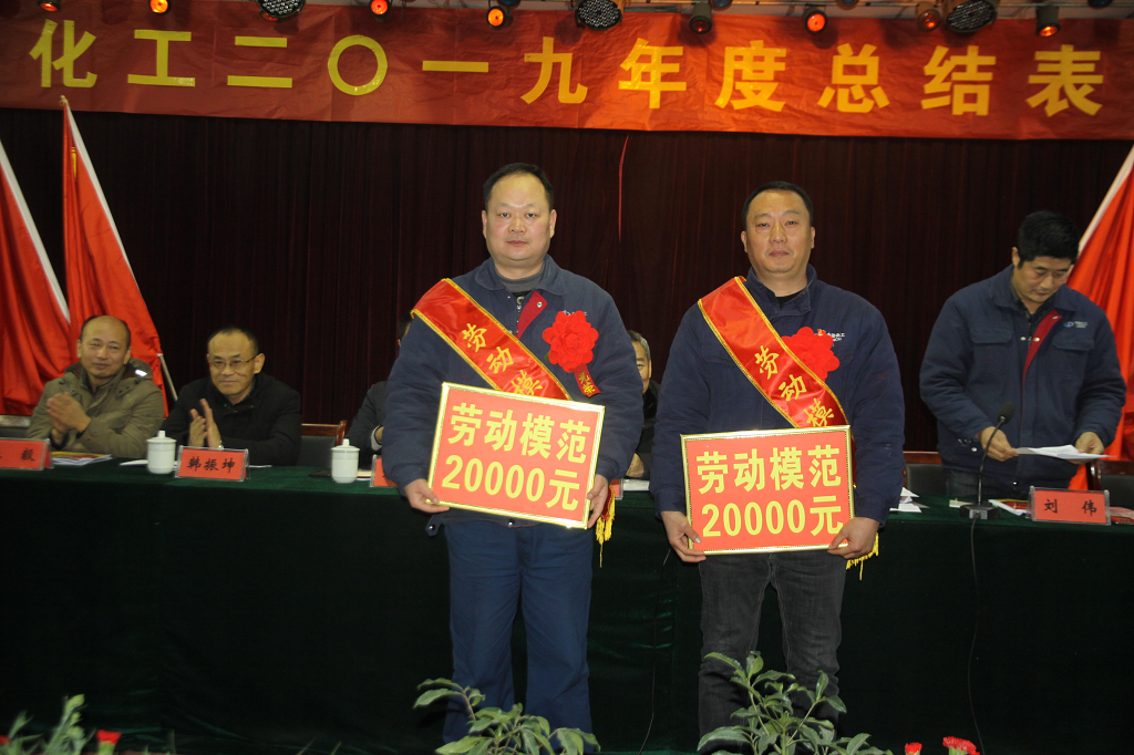 先进集体代表双氧水车间劳动模范宋伟和先进个人代表劳动模范肖俊山分别宣读了先进集体和先进个人倡议书。倡议广大员工情系中能、立足岗位、爱岗敬业,积极做好2020年的各项工作,为实现“三百愿景”而努力奋斗。