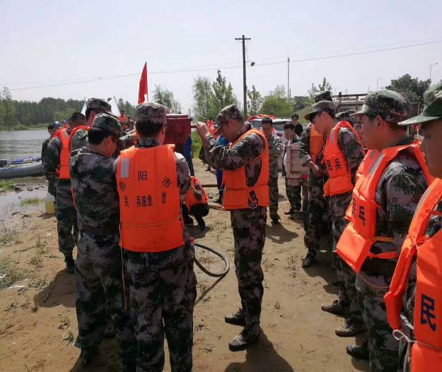 演练开始,临泉县人武部领导给我们讲解了民兵在国防建设中的重要性和当前抗洪抢险训练的重要意义,让我们深刻地认识到民兵及民兵应急连的现实作用。民兵同志一定要服从指挥,坚决能够立刻投入到抢险救灾一线,灾害面前迅速集结,做到召之即来、来之能战。