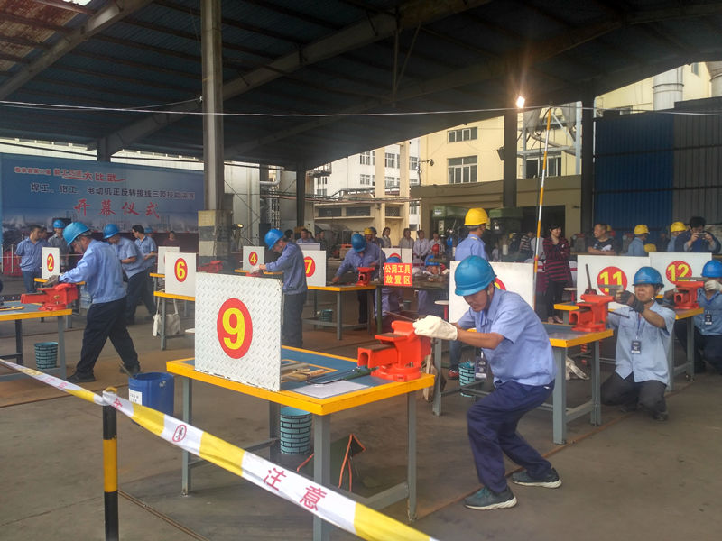 临泉县第二届能工巧匠技能决赛,安微晋煤中能赛区2017年9月24日上午8:00在1#尿素包装场地正式拉开序幕。比赛分焊工,钳工,电动机正反转接线三个专业小组进行。比赛开始后,选手按比赛规程要求进入各自预定位置。随着裁办一声令下“开始!”,参赛选手迅速进入实战决赛。看这边焊工赛区,焊花飞溅;看那边钳工赛区,精锯细锉,再看南边,电动机正反转接线赛区,专业电工熟练快速接线。比赛现场气氛热烈,紧张,严肃,认真,大有“欲与天公试比高”,不拿第一,决不罢休之势。